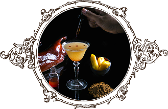 Ingredients: Spiced rum, cherry syrup, cola reduction, lemon