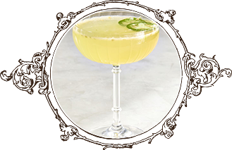 Ingredients: Peach whiskey, lemon juice, jalapeño simple syrup